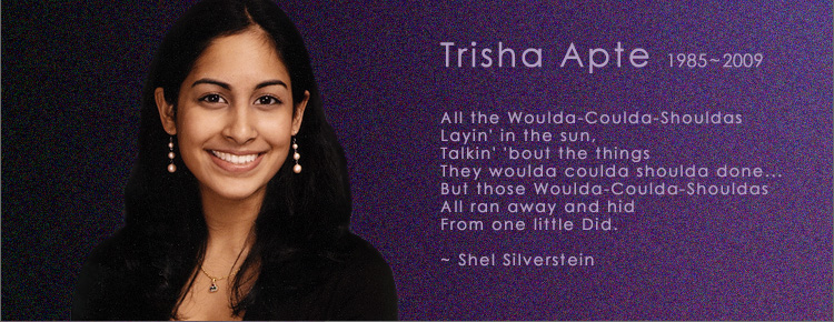 We miss Trisha dearly but her spirit lives on in our hearts. This site that has been created to help friends, family, and well‑wishers remember the amazing person that Trisha was.