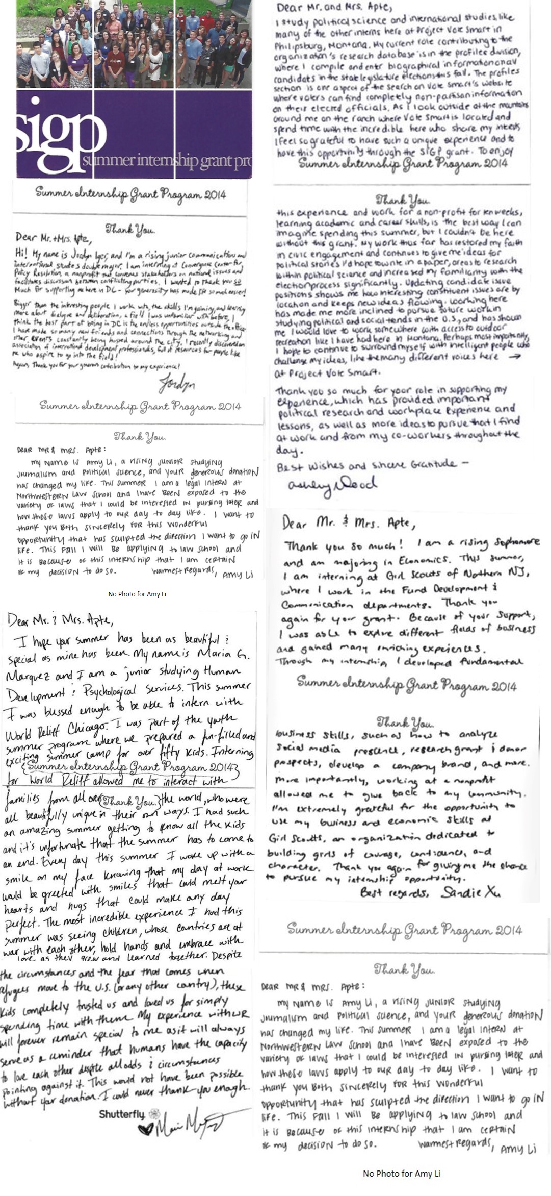 As a result of Suhas and Megha Apte's generous endowment support and investments in the Trisha Apte Memorial Fund as partners in creating opportunities for Northwestern University's faculty and students to achieve excellence in the classrooms, nine ambitious and intelligent students received grants to pursue their dreams during the 2014 Summer Internship Grant Program.