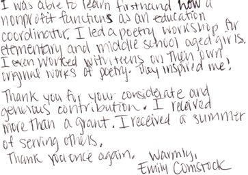 Although it will never fill the void created by your loss of Trisha, your gift is invaluable to these five women and to the many more young people whose lives have changed over the years as your philanthropy has empowered them to more fully develop into the people they were made to be. Thank you, again.
